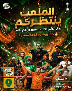 الملعب ينتظركم في نهائي كأس الاتحاد السعودي لكرة اليد،حضوركم وقود انتصارنا