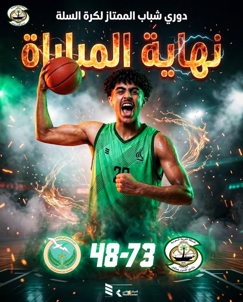 انتهت المباراه لدوري شباب الممتاز لكرة السلة يوم الثلاثاء الموافق ٢٨\٤\٢٠٢٦ بفوز نادي السلام ٤٨ نقطة على نادي النور ٧٣ نقطة .